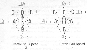 The battle sail speed of each ship is printed on the counter adjacent to the stern of the ship diagram (see Introduction to Rules II.C.2). All ships have a battle sail speed of either 3 or 4.