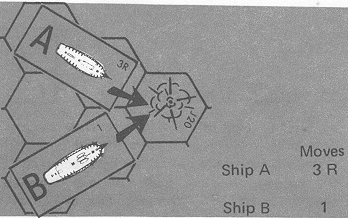 All ships are moved simultaneously. The move of each ship must be written secretly in the log before any ship can actually be moved on the mapboard.