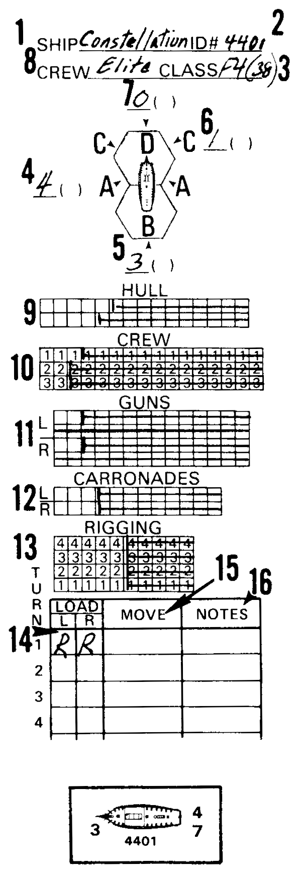 - Section 13 is the Rigging section. Each line of squares represent one battle sail speed factor. The number of rigging squares per battle sail speed factor is given in the Order of Battle. Squares not being used are marked out.